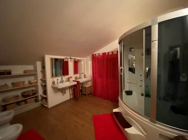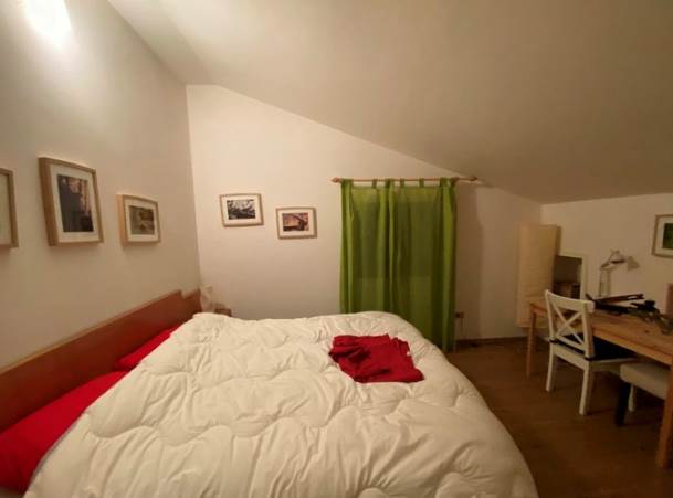 a piano terra troviamo: ingresso, cantina, ripostiglio, camera, bagno e zona giorno oltre all'intercapedine sul retro del fabbricato che funge da deposito; mediante scala interna si raggiunge il piano secondo così distribuito: disimpegno, n. 3 camere, bagno e ripostiglio.