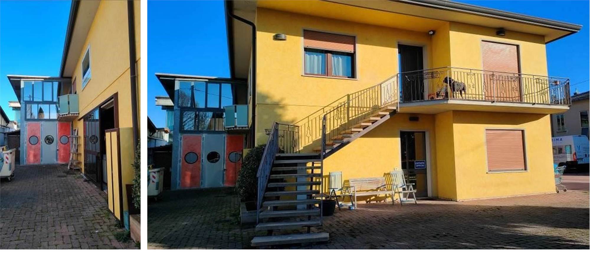 Complesso immobiliare costituito da ampio lotto di terreno sul quale insiste un edificio costituito da un fabbricato artigianale e da un appartamento. L’appartamento al primo piano è costituito da ingresso, corridoio, soggiorno, camera con terrazza, bagno, seconda e terza camera, scala di collegamento con il piano terra e cucina con terrazza. Il fabbricato artigianale al piano terra è costituito da ampio vano con destinazione laboratorio con servizi igienici e ufficio.