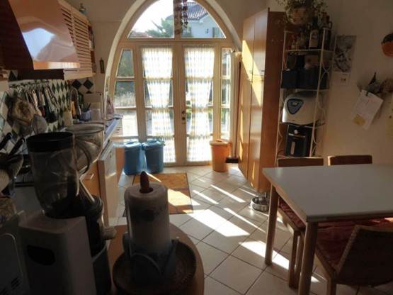 Abitazione porzione al piano terra di fabbricato bifamiliare con 2 livelli fuori terra oltre a piano seminterrato, consistenza 7,5 vani, superficie 153 mq; area urbana di 6 mq che viene ritenuta parte dello scoperto esclusivo dell'abitazione.