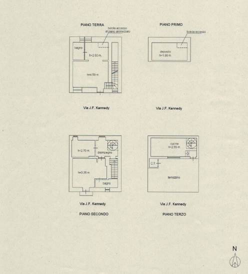 Immobile indipendente composto da piano terra, piano primo (piano ammezzato), piano secondo e piano terzo con terrazzo di pertinenza esclusiva. Superficie catastale totale 151 mq (escluso le aree scoperte 143 mq)