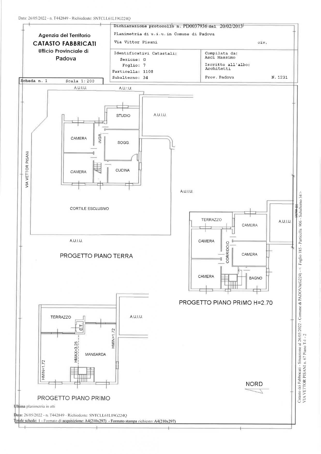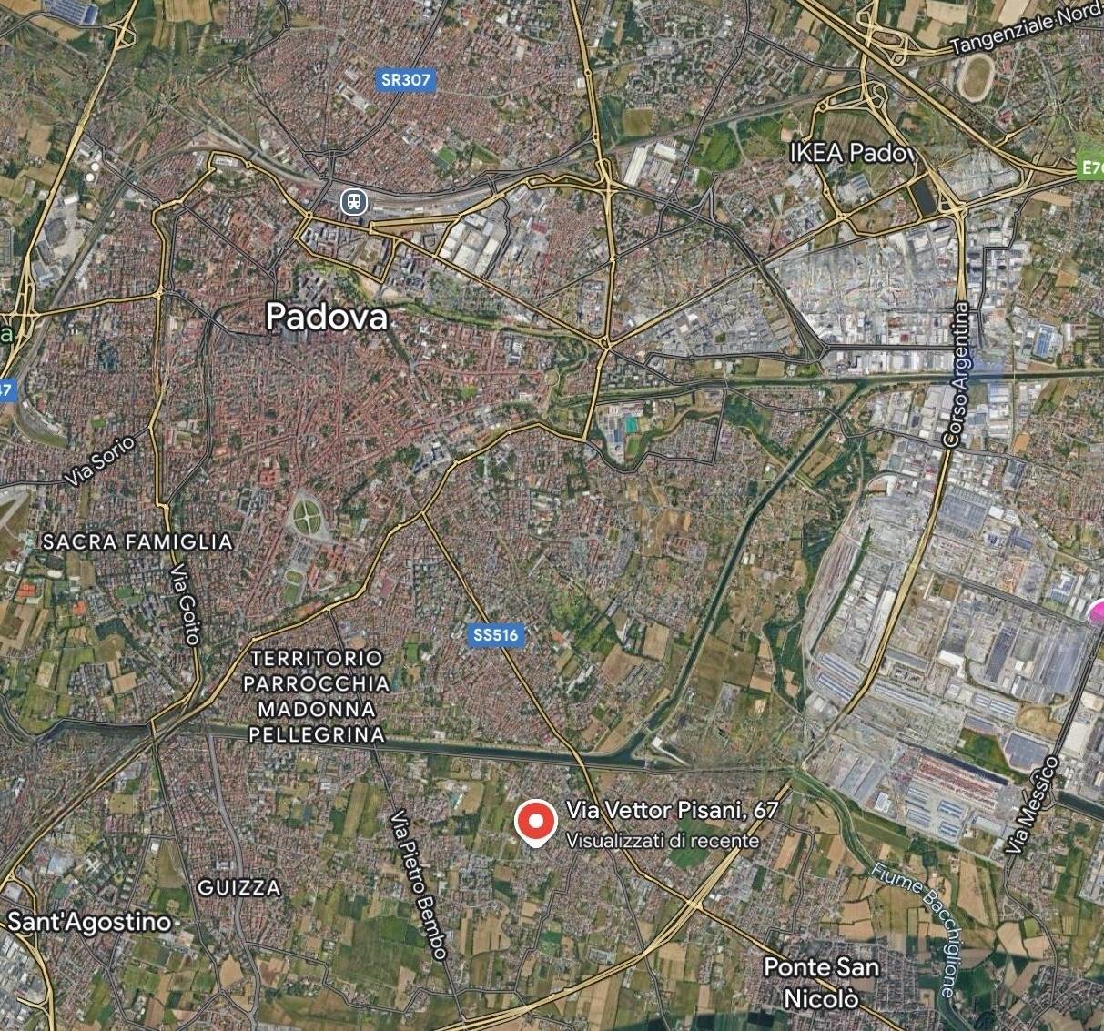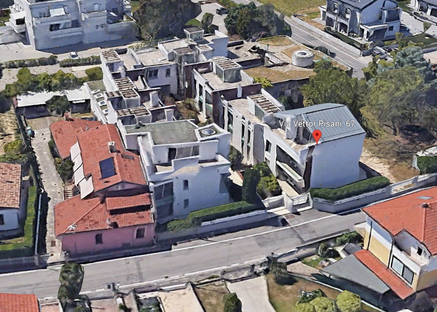 Villa a schiera facente parte del complesso condominiale sito in Comune di Padova, quartiere "Crocefisso", con ingresso da via Vettor Pisani n. 67, e precisamente la casa, sull'angolo nord ovest del complesso, disposta ai piani terra, primo e secondo, quest'ultimo mansardato e al grezzo, con cortile esclusivo e n. 2 garages al piano primo sottostrada,