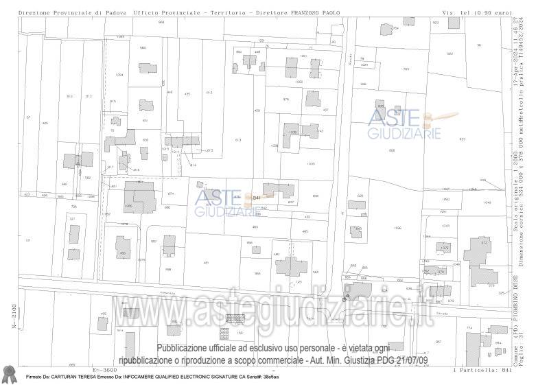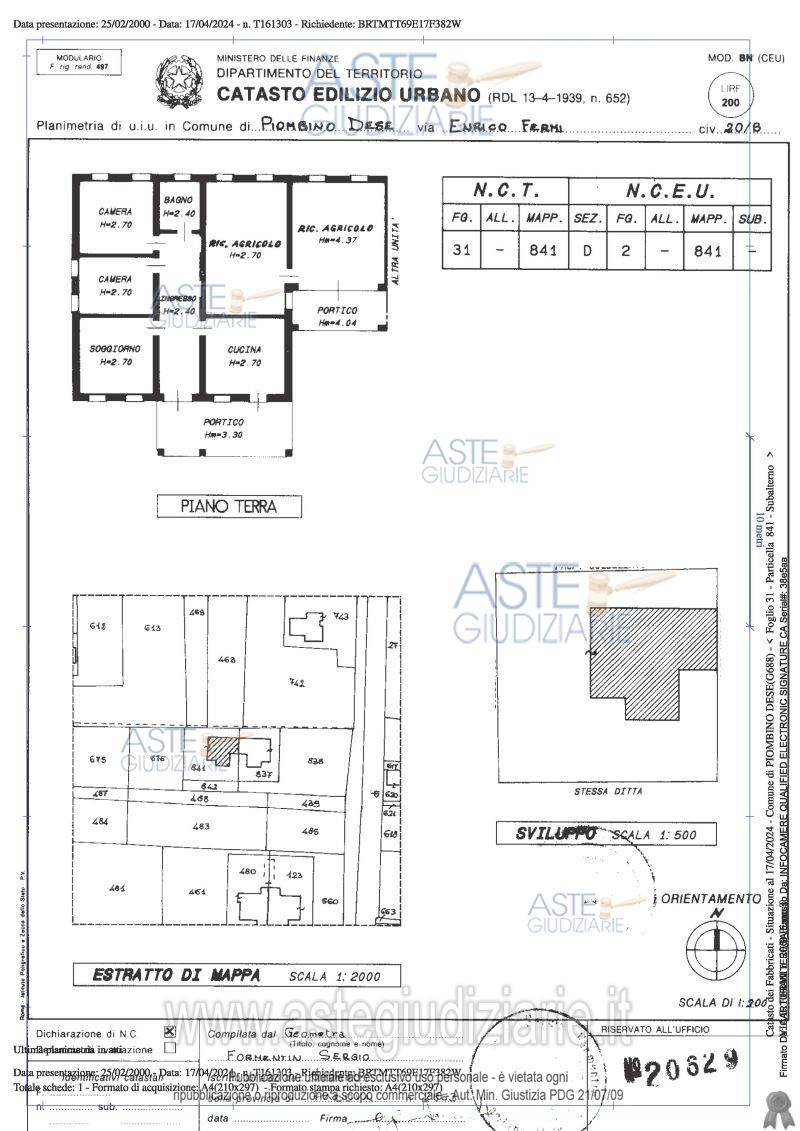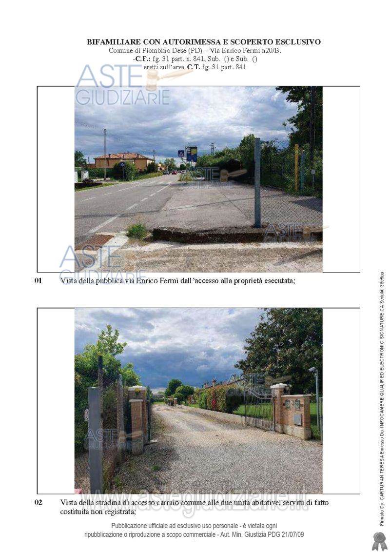 Villa bifamiliare (per la parte sud-ovest) a Piobino Dese, in via Fermi 20 composta da ampio portico di ingresso, corridoio centrale che distribuisce verso un soggiorno, una cucina abitabile, due camere da letto matrimoniali, una camera doppia, un bagno finestrato ed un locale centrale termica-lavanderia direttamente comunicante con il locale garage con un piccolo portico oltre ad annesso terreno di catastali mq. 1.062.