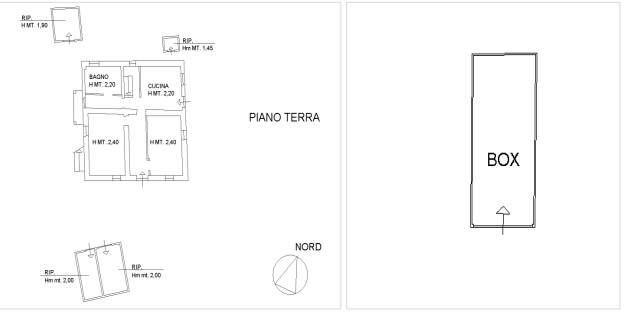 Fabbricato residenziale unifamiliare di due piani fuori terra collegati da scala interna, composto da ingresso, soggiorno, bagno e cucina al piano terra, due camere da letto, locale ripostiglio-sgombero al piano primo e, in corpi staccati dall’abitazione, tre rustici di modeste dimensioni e autorimessa prefabbricata, per superficie commerciale complessiva 157 mq circa, oltre al sedime di pertinenza esclusiva.