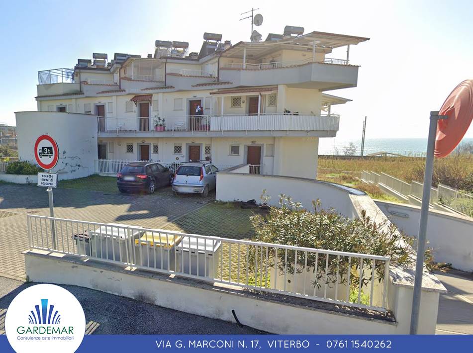 Appartamento all'Asta di 59 MQ con balconi vista Mare di 45 MQ, ubicato all’interno del complesso residenziale “le Perle” in Santa Marinella (RM), distante circa 200 mt dal Mare. Posto al piano primo e secondo (sottotetto), è composto da soggiorno/angolo cottura/camera e da un bagno; tramite scala interna si accede al piano secondo/sottotetto ed al balcone vista Mare. Pavimento in listelli tipo “parquet”.