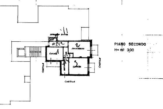 Piena ed intera proprietà di appartamento al piano secondo. composto da cucina, soggiorno, ripostiglio, camera ed un bagno con annessi pertinenziali cantina e box autorimessa a piano interrato. Lieve difformità edilizia sanabile.