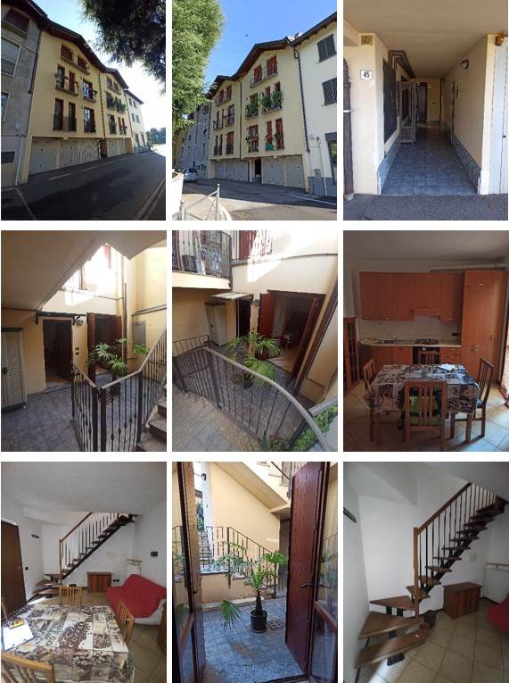 Piena proprietà di appartamento bilocale con box singolo e cantina posto a piano terra e sviluppato su due livelli (terra e primo piano), composto da: soggiorno/cucina al piano terra, camera singola e bagno al piano 1°, provvisto di cortiletto privato pavimentato e recintato, oltre autorimessa singola a piano terreno e vano cantina a piano interrato.