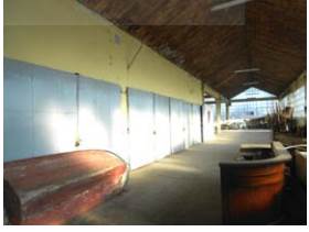 Capannone a piano terra, così suddiviso: ingresso su ampia zona espositiva del prodotto di lavorazione con annesso ufficio, zona di produzione con attrezzatura e macchinari, n. 6 vani chiusi adibiti a magazzini, n. 2 locali di sgombero, una zona deposito ed un ampio spazio a lato dei locali succitati. La superficie lorda è di circa mq. 2584,64. Servizi igienici annessi, situati a sud del capannone, per una superficie lorda di circa mq. 59,28. Tettoia aperta ubicata esternamente sul lato est dell’immobile a confine con il Rio Luria, per una superficie lorda di circa mq. 83,00.