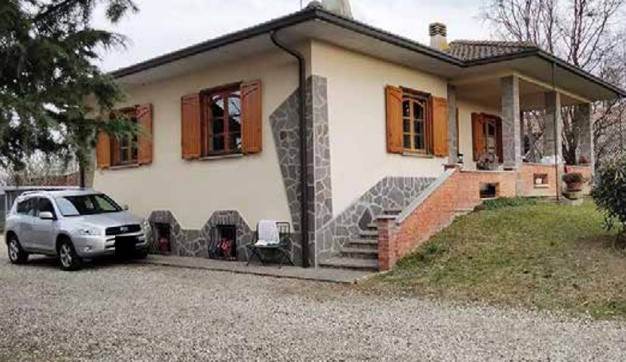 Piena proprietà di Villa unifamiliare, oltre a casa colonica con accorpata autorimessa, altra autorimessa ed un deposito, il tutto insistente su appezzamento di terreno di proprietà recintato (proprietà 1/1). La villa, è composta da piano rialzato e piano seminterrato collegati da una scala interna. Il piano rialzato è composto da: ingresso, soggiorno, cucina, due camere, disimpegno e bagno. Il piano seminterrato è composto da: cantina, centrale termica e ripostiglio. La casa colonica di due piani fuori terra, è cosi disposta: al piano terra: soggiorno con angolo cottura, tre bagni, due disimpegni, ripostiglio, camera, oltre autorimessa accorpata all’edificio; al piano primo: camera, cassero aperto. Un’altra autorimessa, a struttura interamente in lamiera, è posizionata al confine di proprietà. Inoltre, è presente un locale completamente in legno, adibito a deposito. Infine sono presenti due serragli per animali, nel giardino di proprietà.