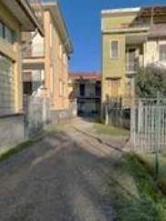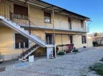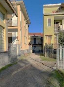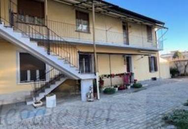 Piena proprietà di trilocale ad uso residenziale, posta al piano primo e ripostiglio, posto al piano terreno della corte comune, a cui si accede dal Corso Torino, previo percorso comune interno, che porta ad una prima porzione di corte comune per proseguire poi verso quella del fabbricato in questione, alla cui abitazione si accede tramite una recente scala ed un ballatoio esterno. L'alloggio è costituito da un vano ingresso che disimpegna il soggiorno, la cucina, una camera, da cui si passa ad un'ulteriore stanza a da questa al bagno. L'appartamento è dotato di impianto termico autonomo a gas con termosifoni in ghisa ed ha una superficie commerciale lorda complessiva ( dell'abitazione, del balcone e del ripostiglio) di mq.118.