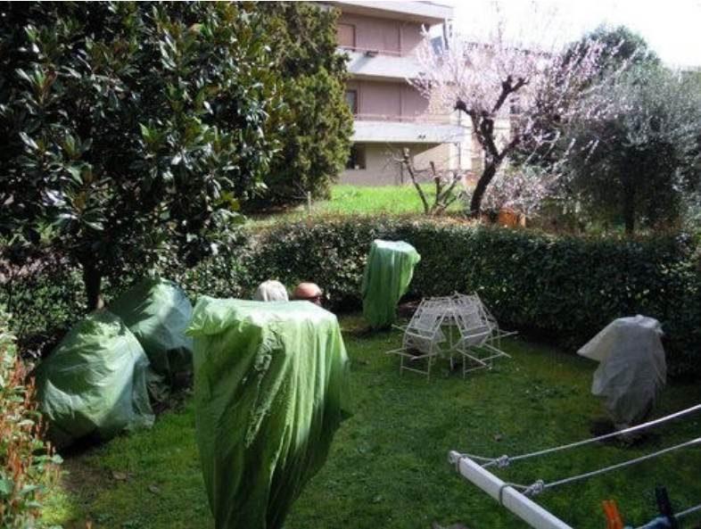 Ha inoltre un giardino privato di 80 Mq, un autorimessa, ed una cantina.