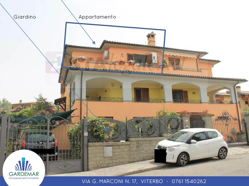 Appartamento all'Asta di 70 MQ facente parte di una bifamiliare a Celleno (VT). Posto al primo piano e con area giardino privata di circa 21 MQ al piano terra. Costituito da soggiorno cucina, tre camere, due bagni, un terrazzo di 16,13 MQ ed un ripostiglio.