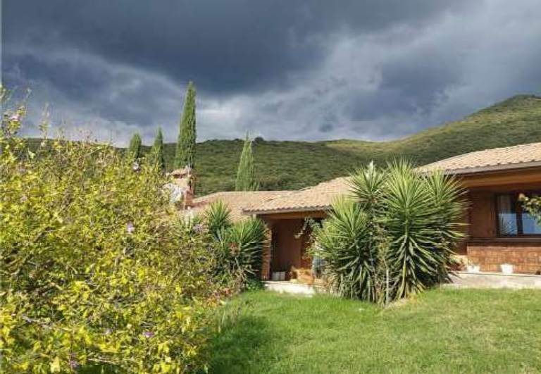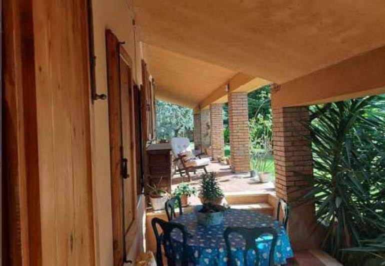 L'abitazione si sviluppa al piano terra ed è composta da soggiorno, cucina, tre camere da letto, due bagni ed un grande portico esterno in muratura.