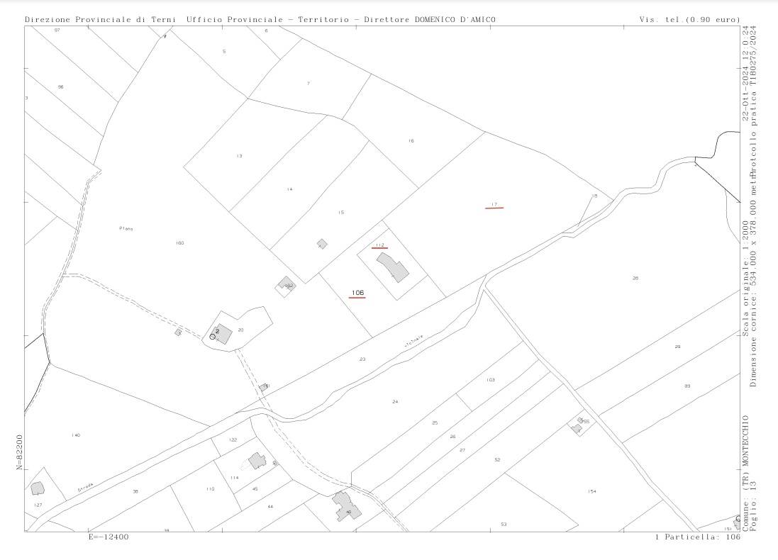 Villa all'Asta a Montecchio (TR) Vocabolo Il Piano, con una superficie netta di 148 MQ oltre a Portico di 62 MQ, Magazzino di 25 MQ; inoltre, circostante Giardino esclusivo di 1.155 MQ e Terreno Agricolo (Uliveto) di 13.670 MQ.