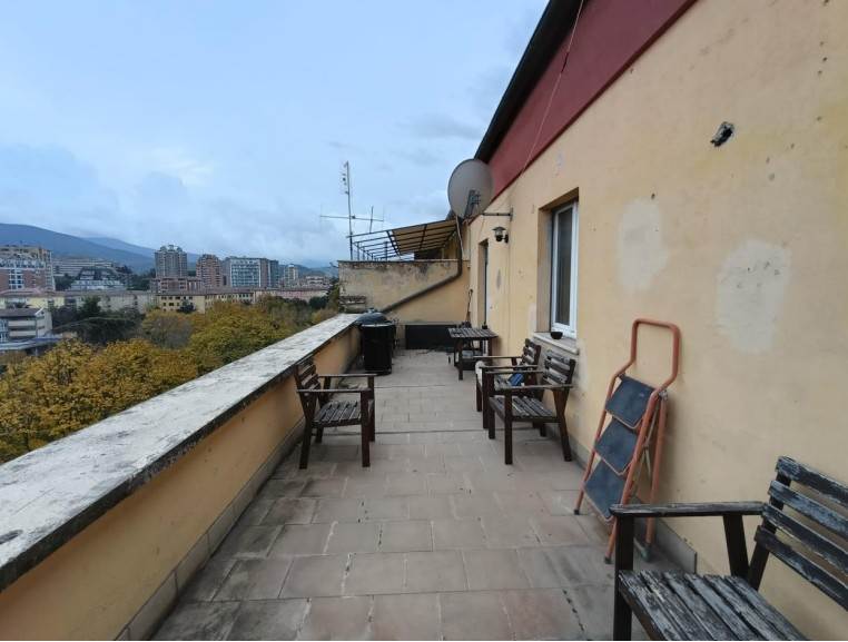 Appartamento di circa 103 Mq. posto al piano quinto (attico), con cantina di pertinenza, composto da ingresso/corridoio, soggiorno con angolo cottura, 2 camere da letto, un bagno, balcone e ampia terrazza scoperta, oltre ad un vano ad uso cantina di pertinenza al piano seminterrato.