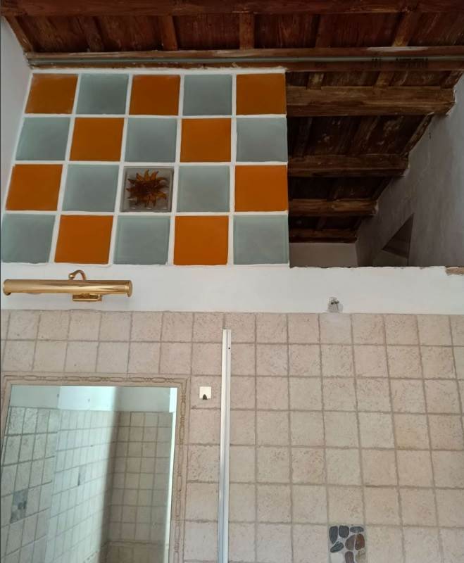 Sulle scale comuni si trova anche un piccolo ripostiglio. Il soffitto è caratterizzato da un solaio di legno a vista (nel soggiorno, tuttavia, è presente un controsoffitto in cartongesso).
